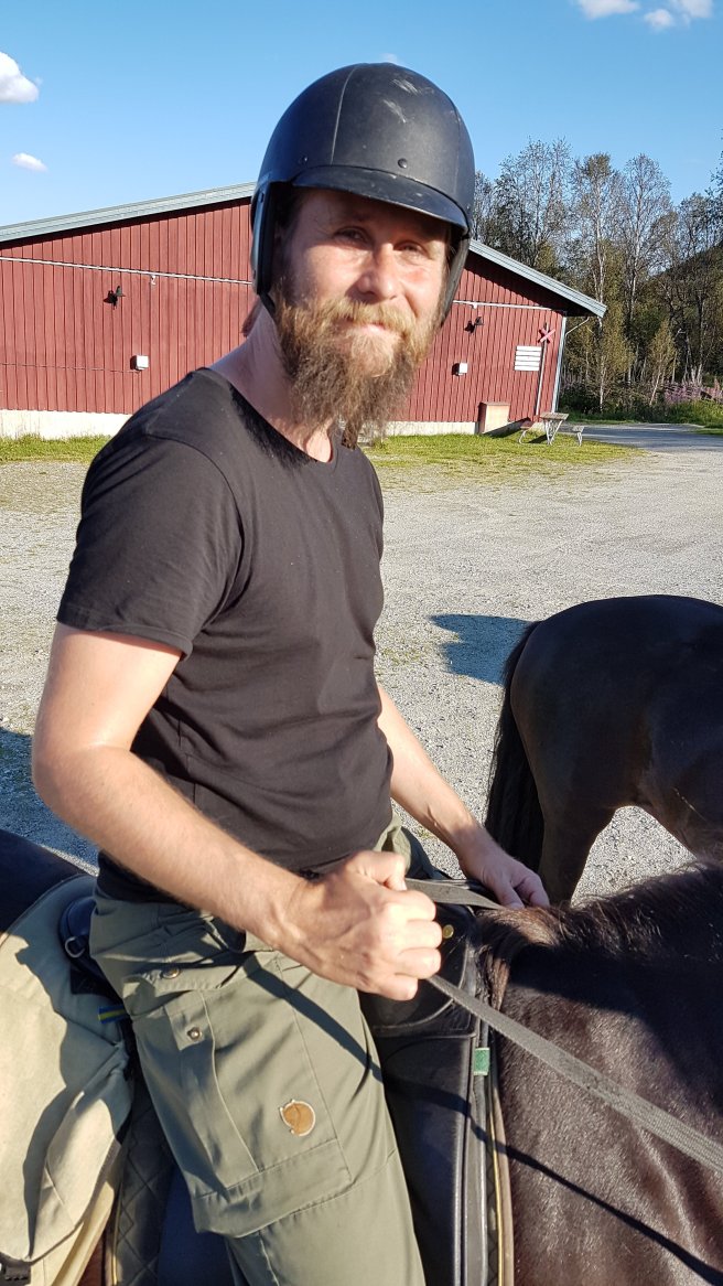 Jag tog faktiskt ridlektioner ett år. Min son rider och jag ville också testa. Min fru har ridit mycket när hon var barn. Ikväll tog vi chansen att följa med på en guidad ridtur i fjällen.
