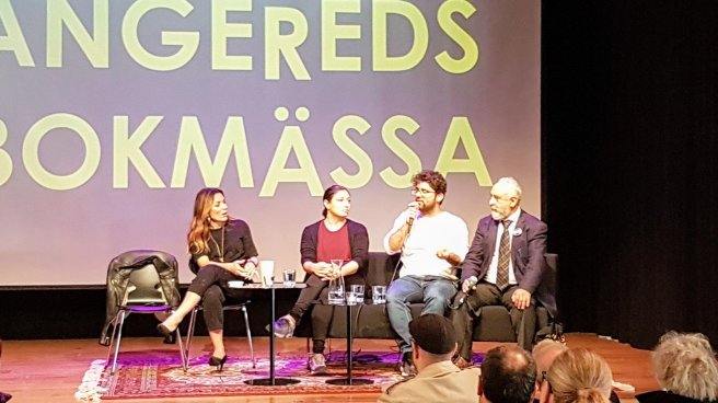 Sedan var det ett panelsamtal. Alexandra Pascadilou ledde samtalet Det var tre författare med invandrarbakgrund som pratade: Nabila Abdul Fattah, Zhiwar Rashid och José Romero. De pratade om många olika ämnen. De pratade bland annat om att skriva på svenska och andra språk. Zhiwar skriver även på kurdiska och José på spanska.