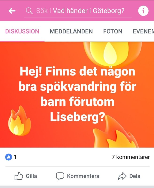 Det finns många facebooksidor. Eller: det finns många sidor på fb. Öppna sifor som alla kan läsa. På sådana sidor kan du hitta vardagsspråk och slang. Här är ett exempel från sidan Vad händer i Göteborg: