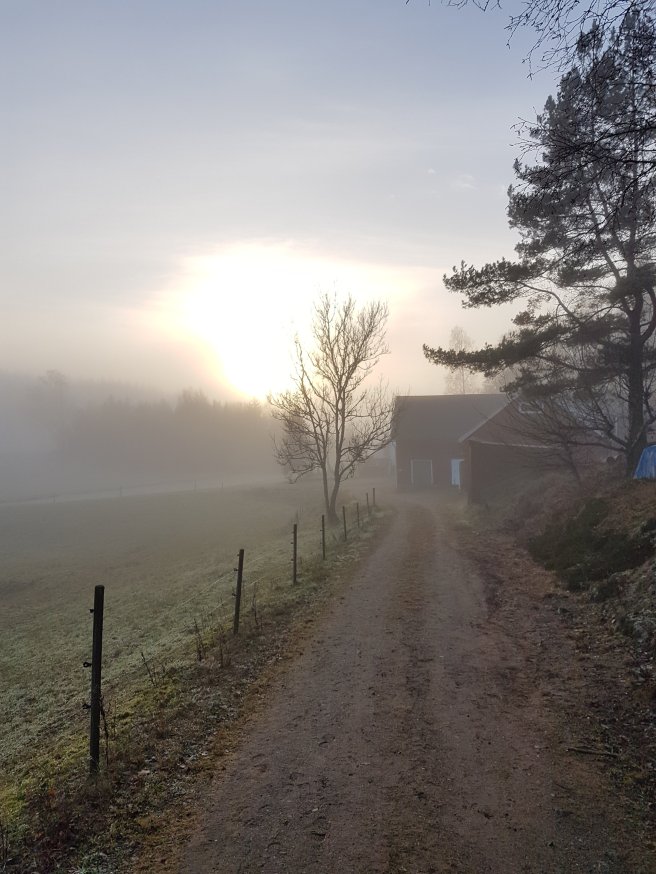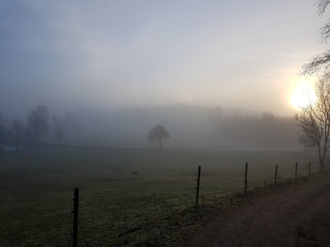 Det var skönt att komma ut i naturen ett slag i alla fall. Landskapet var vackert och sagoaktigt med solen som lyste genom molnen och dimman.