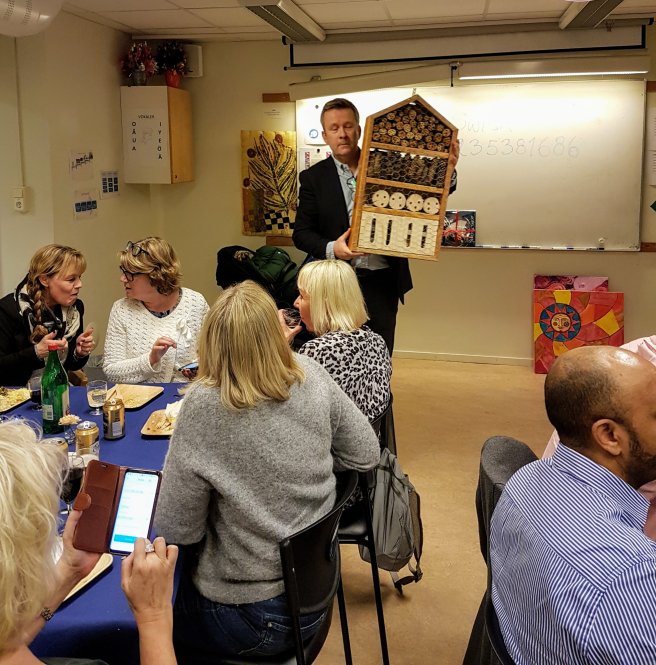 På festen hade vi en auktion. Det betyder att man säljer saker till högstbjudande. Alla som vill får ropa ett pris. Den som ropar det högsta priset till slut får köpa saken. Min chef höll i auktionen. Han var auktionsförrättare.