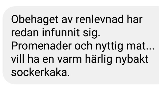 Ett exempel. Jag och en kompis försöker peppa varandra att leva lite hälsosammare. Hon skämtar om att det är tråkigt: ”Obehaget av renlevnad…” (=den obehagliga känslan av att leva nyttigt)