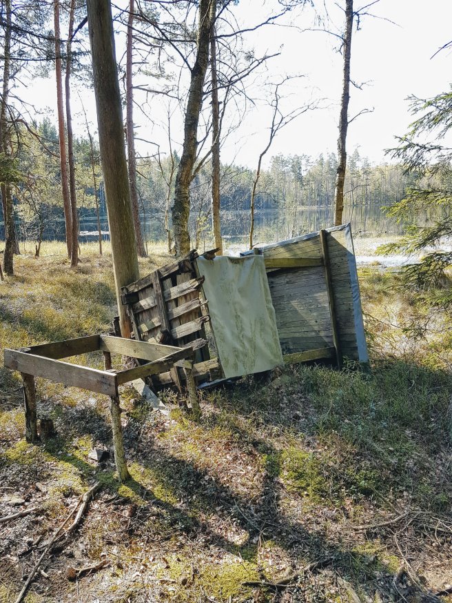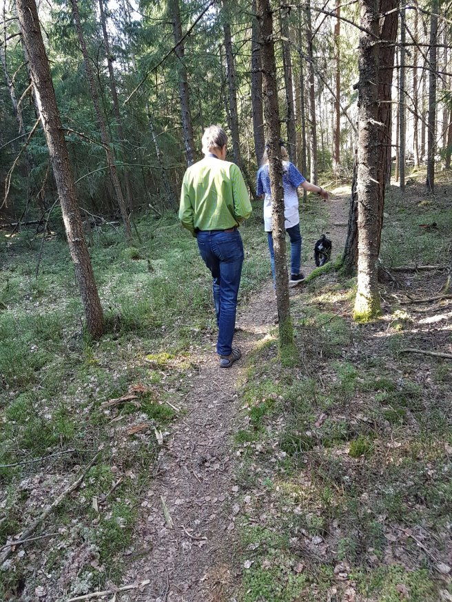Vi såg ett rasat älgtorn också. Älgtorn används vid älgjakt. Min svärfar var en duktig älgskytt. Jag har aldrig jagat själv. Jag har bara prövat att skjuta prick med älgstudsare en gång. Det var häftigt.