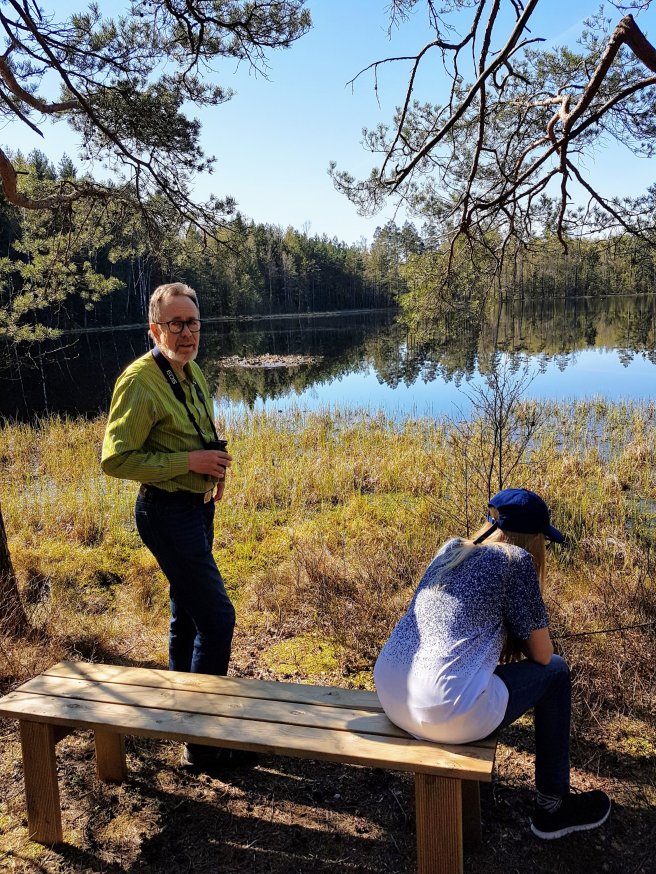 Det är roligt att promenera med min far i skogen. Han kan mycket om fåglar. När en fågel sjunger, kan han höra vilken art det är. Vi hörde bland annat kungsfågel, lövsångare och gärdsmyg.