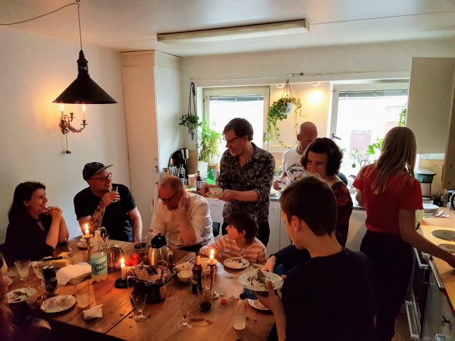 Vi bjuder inte hem folk jätteofta. Det är trevligt att ha folk som sitter och trängs och pratar i vårt lilla kök. Det värmer upp hemmet på något sätt.