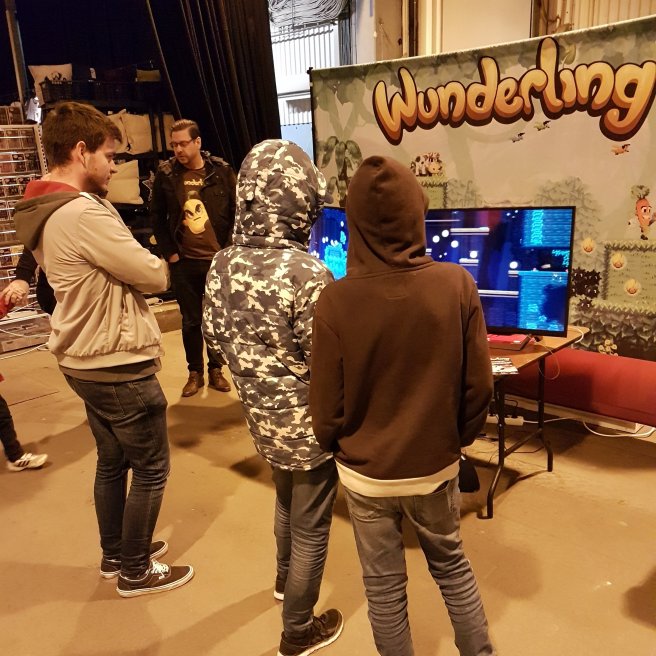 Jag blir lite nostalgisk när jag tänker på det. Det är kul att min son är intresserad av äldre spelkultur. Det här var fjärde gången vi gick på Retrospelsmässan tillsammans. Här står han och pratar med en programmerare som visar ett nytt spel i klassisk stil.