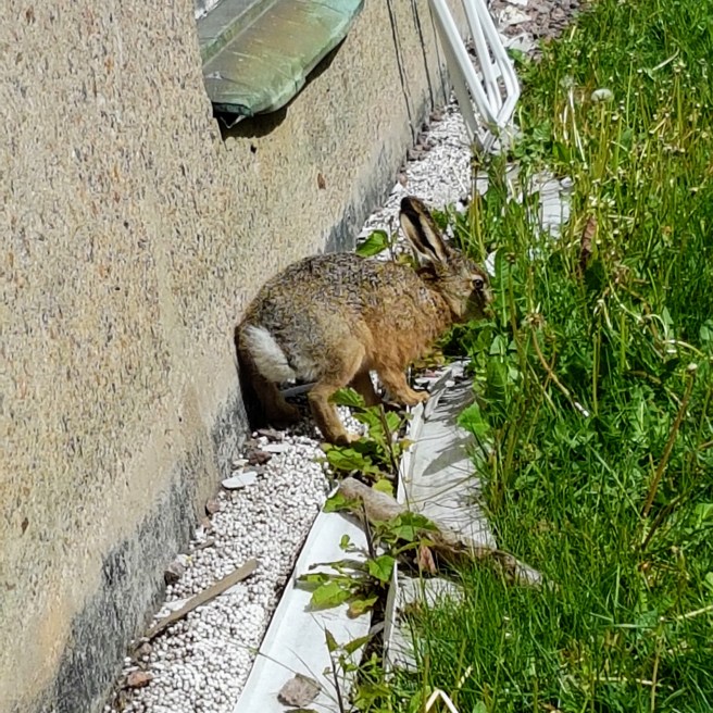 Den här kaninen satt utanför mitt jobb, fullt upptagen med att mumsa gräs. Jag tror knappast den oroade sig för framtiden. Jag tror knappast den grämde sig över något som hänt tidigare.