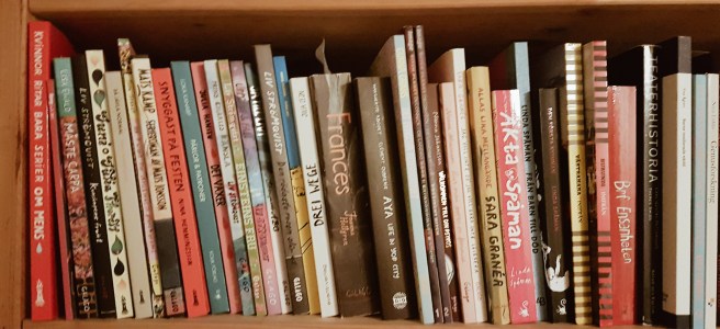 Jag missade att blogga i fredags så det får bli ett inlägg idag istället. Bokhyllan i ett hem är en intressant plats. Vad hittar man där? I lägenheten jag växte upp fanns massa böcker. Längs en vägg i vardagsrummet stod många böcker. Min mamma har berättat att jag som barn brukade riva ut alla böckerna … Fortsätt läsa Bokhyllan